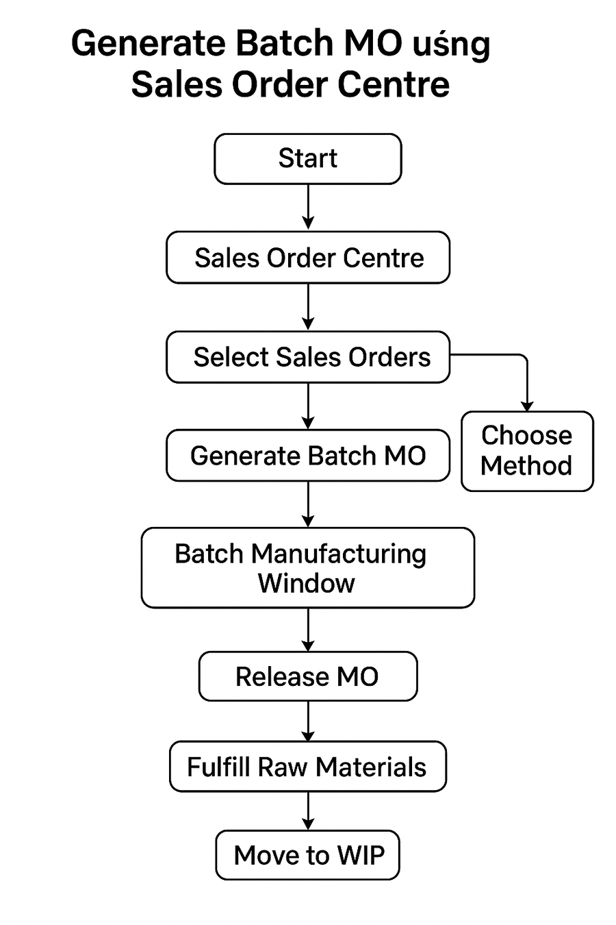 The new Generate Batch MO option in the Sales Order Centre (SO Centre) is the central point for initiating this process.